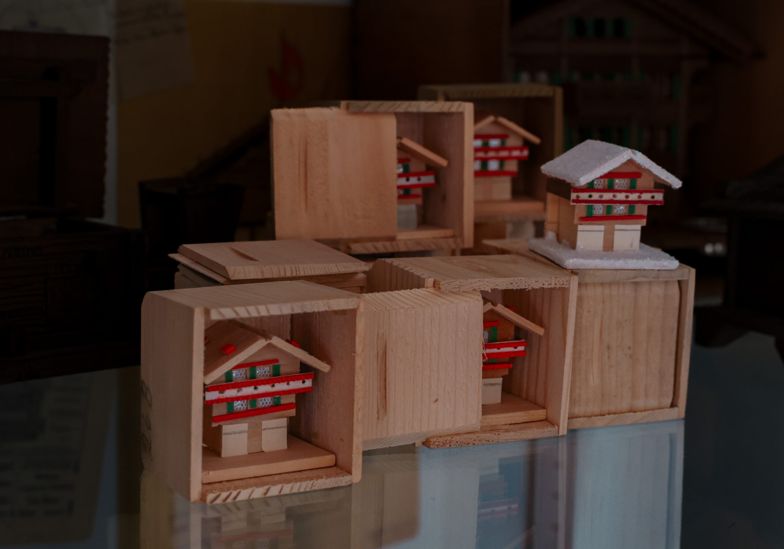 In der ersten Hälfte des 19. Jahrhunderts entwickelte sich die Jungfrauregion zur Pflichtdestination auf der Grand Tour, der grossen Rundreise durch die Schweiz. Die immer zahlreicheren Besucher verlangten nach Beweisstücken, nach Souvenirs und Mitbringseln- eine Nachfrage, die das lokale Gewerbe bald zum Blühen brachte. Um 1850 arbeiteten zwischen Lauterbrunnen und Meiringen und rund um den Brienzersee mehrere tausende Menschen in der Souvenirindustrie, mehrheitlich ohne Ausbildung und meist spezialisiert auf einzelne Produkte: Salatbesteck, Kassetten, Bären, Gämsen …… oder eben, Chaletminiaturen.